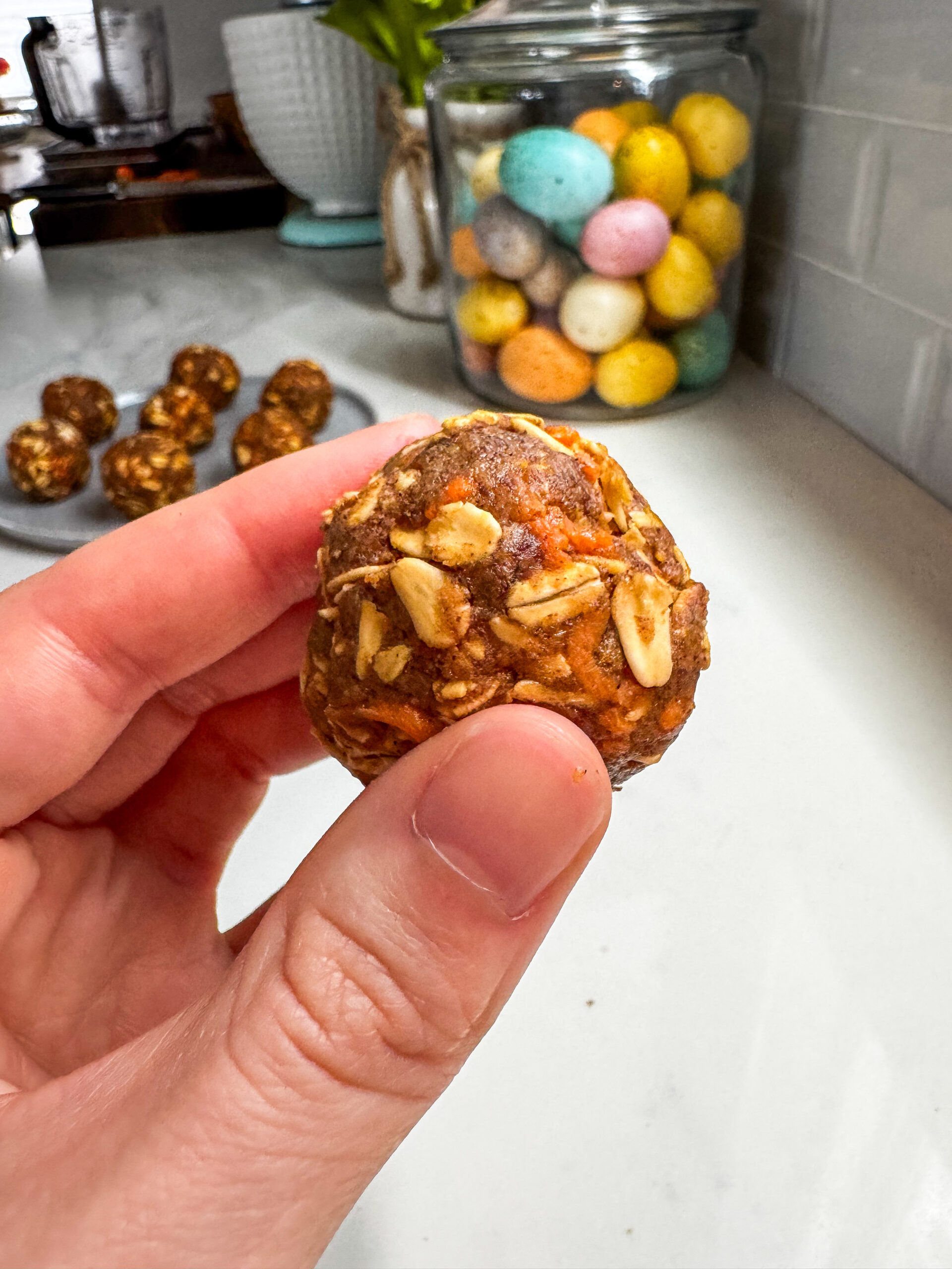 These bites are made with wholesome ingredients like shredded carrots, oats, nut butter, and protein powder to give you lasting energy and satisfy your sweet tooth. They come together in just minutes and require no baking, making them perfect for busy weekdays, pre-workout fuel, or a better-for-you dessert option. Plus, they’re easy to store in the fridge or freezer, so you can always have a batch on hand.