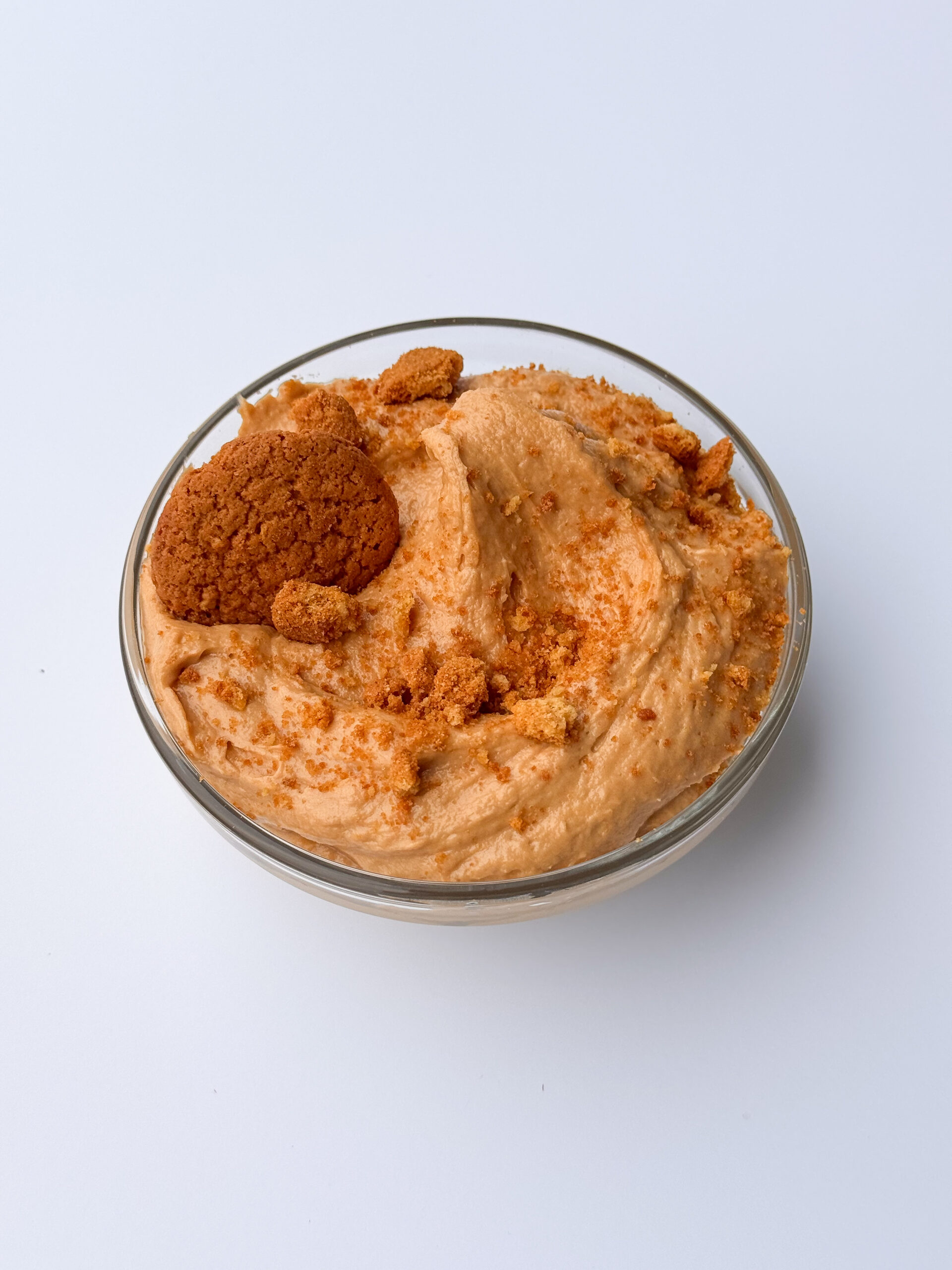 - Transfer to a serving bowl, top with crushed biscoff cookies or cookie butter drizzle and enjoy!
