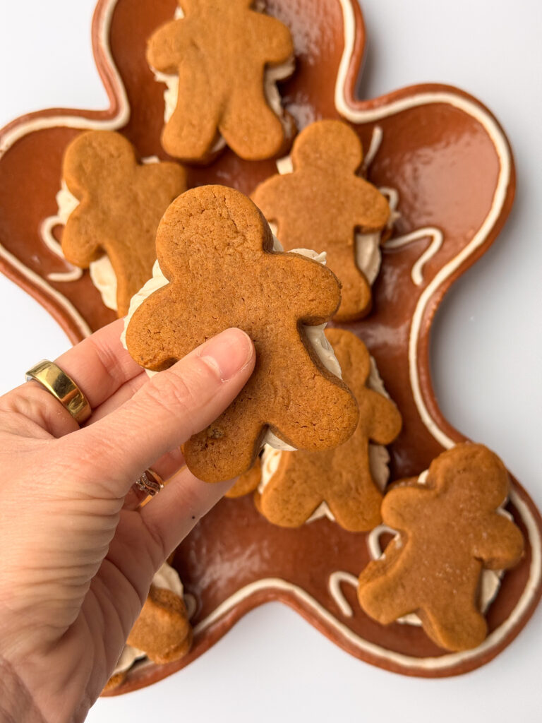 If you love soft gingerbread cookies, just wait until you turn them into the most irresistible holiday sandwich cookies. These soft gingerbread cookie sandwiches are thick, tender, warmly spiced, and filled with a silky spiced cream cheese frosting that tastes like Christmas in every bite.