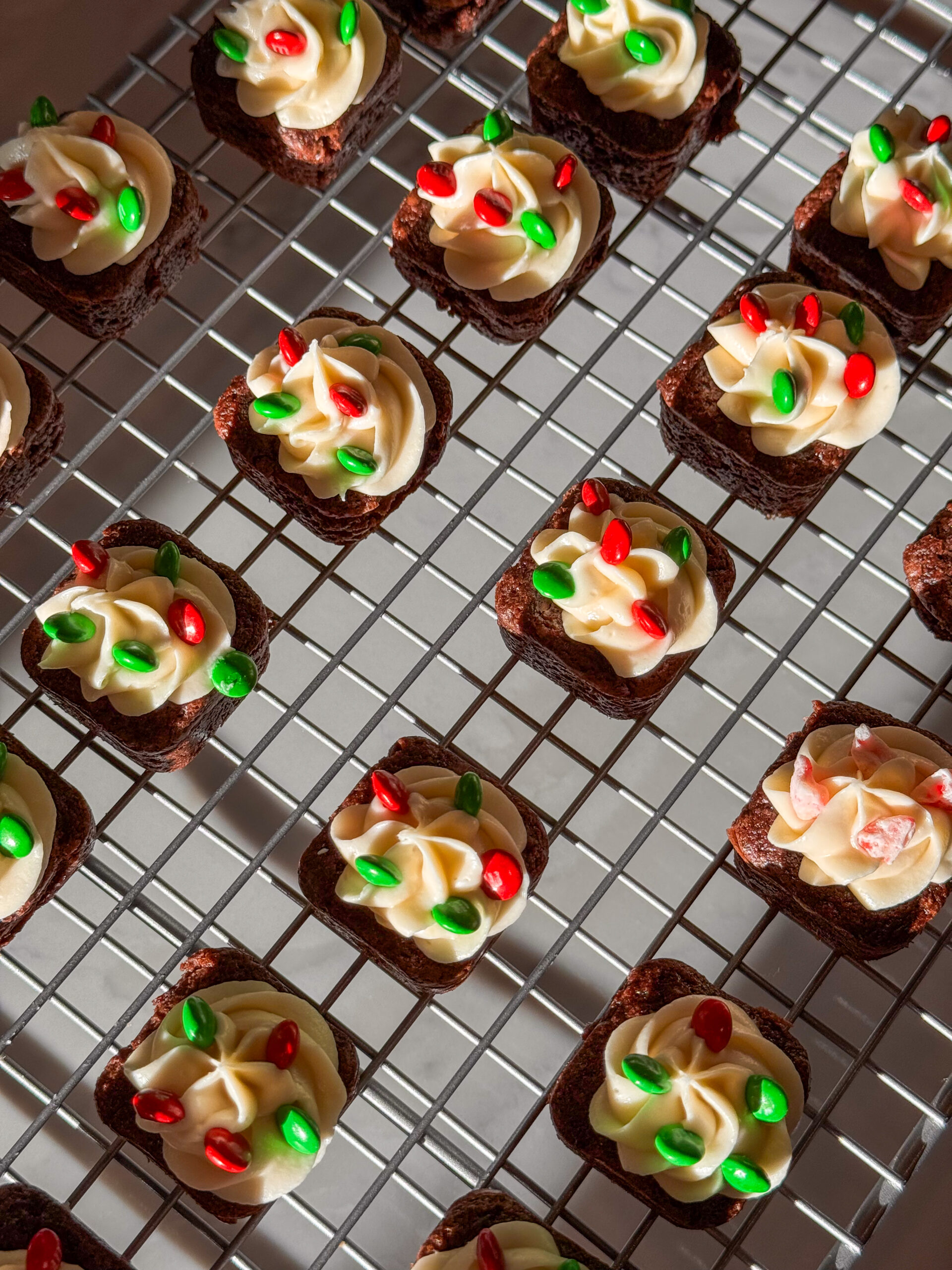 These little brownies are perfect for cookie boxes, holiday parties, or those nights when you want to bake something festive without spending hours in the kitchen. They’re easy, they’re adorable, and they’re always a crowd favorite—especially with kids. The best part is, they’re made with box brownie mix because if the wheel ain’t broken… don’t fix it!! Whether you’re hosting a cozy Christmas movie night or looking for a quick dessert to gift, these mini brownies deliver big Christmas cheer in every tiny bite. Enjoy!