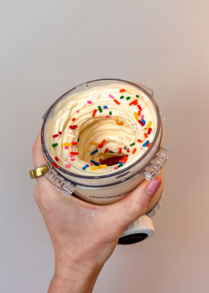 It’s no secret I’m a Creami fanatic and this recipe is one I keep coming back to again and again. It’s the perfect vanilla-y base in my opinion that can go so many different directions with the right mix ins. Today I’m keeping it simple and giving you a classic Cake Batter Protein ice cream but get creative and add cookie dough, OREOs, berries or biscoff cookies!